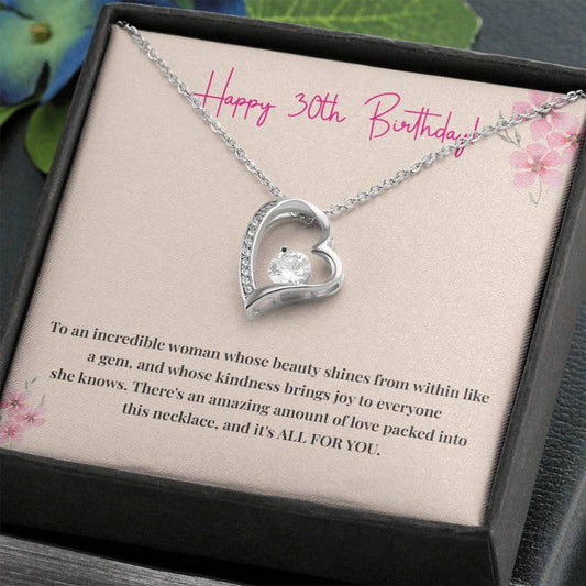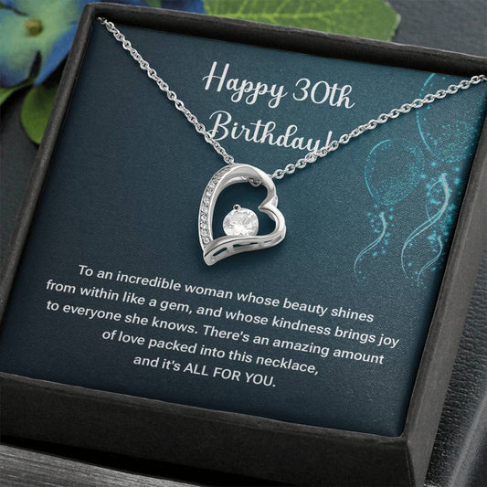 30th Birthday Gift Necklace for Her – Message Card & Gift Box