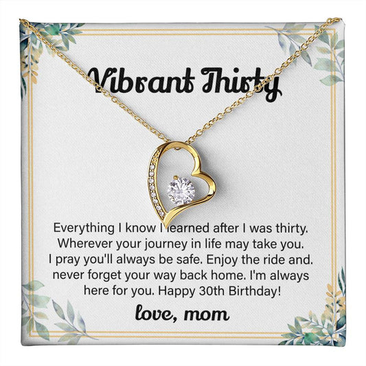 30th Birthday Necklace Gift for Her – Heart Pendant with Message