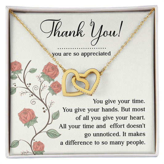 Appreciation Necklace - Thank You For Giving Your Heart, A Meaningful Gift For Those Who Make A Difference