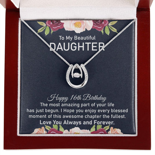 16th Birthday Horseshoe Necklace Daughter With Message Card
