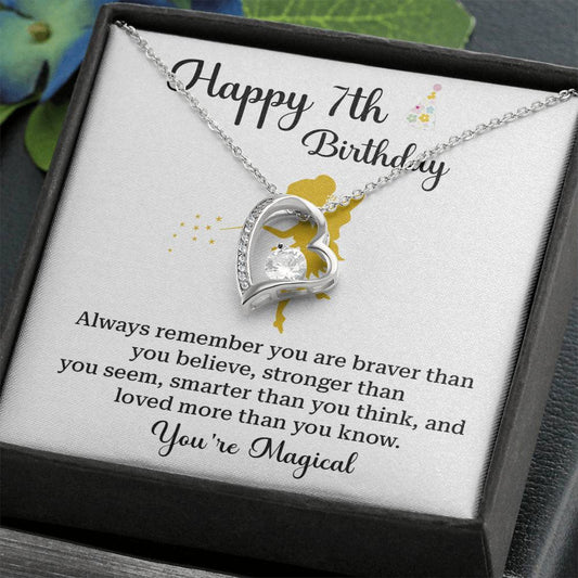 7th Birthday Necklace Gift for Girl – Sweet Message Card Jewelry