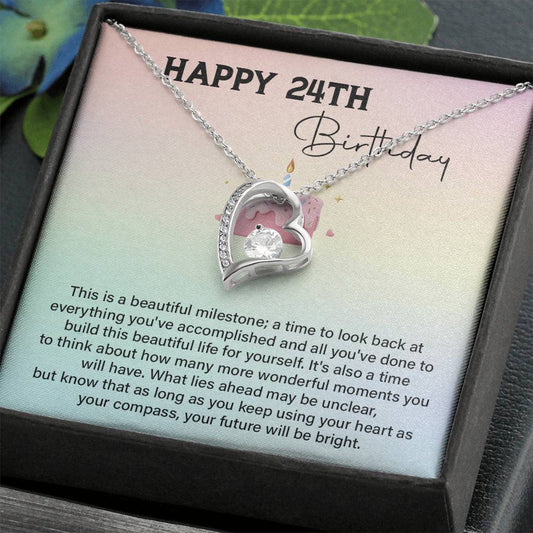 24th Birthday Necklace Gift for Her – Heart Pendant with Message Card