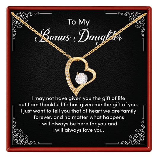 Bonus Daughter Necklace from Stepmom or Stepfather - Heart Shaped Crystal Pendant Gift