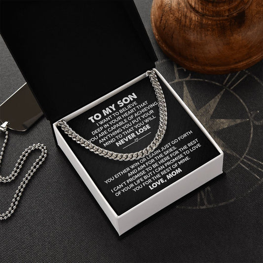 To My Son I Want To Believe Deep In Your Heart, Birthday Christmas Gifts For Him Stainless Steel Cuban Link Chain For Man
