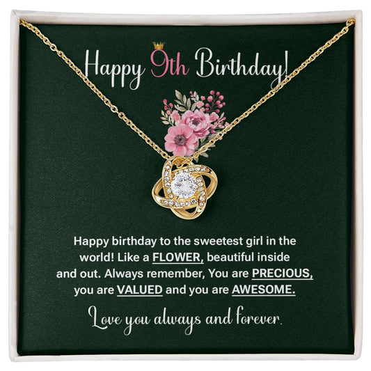 9th Birthday Necklace Gift for Girl – Sweet Message Card Jewelry