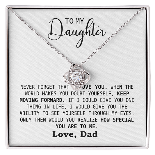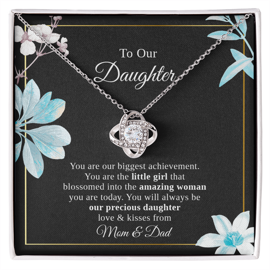 To Our Daughter Necklace Gift – Love Knot Pendant with Heartfelt Message Card