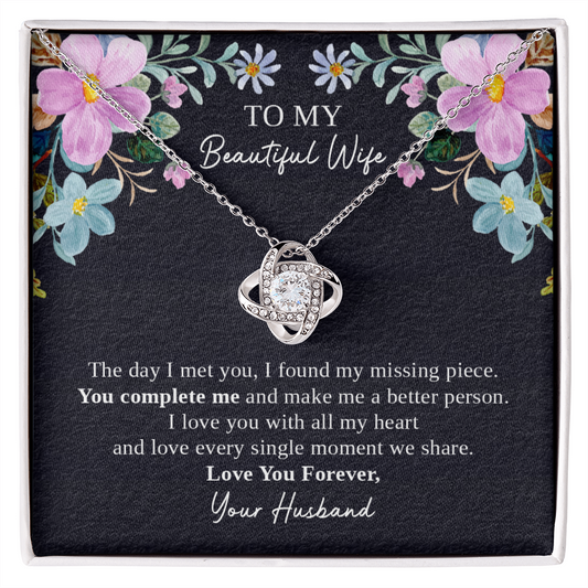 To My Beautiful Wife Necklace Gift from Husband with Love Knot Pendant and Romantic Message Card