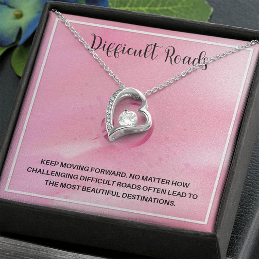 Heart Necklace Gift for Her – Difficult Roads Inspirational Card