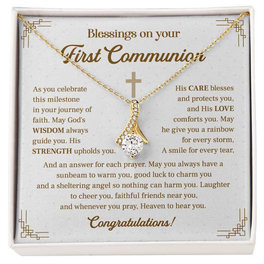 First Communion Gift Necklace – Religious Pendant with Blessings Card