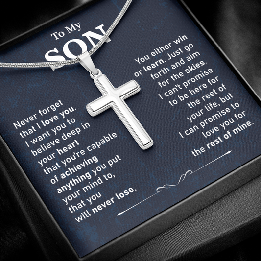 "To My Son Necklace - Forever Linked Together with Love, Strength, and Belief"
