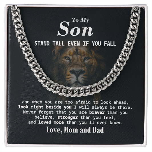 Cuban Chain Gift for Son from Mom and Dad with Inspirational Lion Message