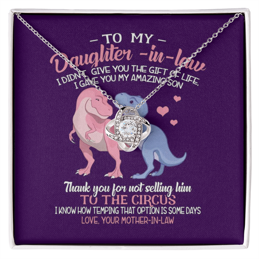 Funny Daughter-in-Law Necklace Gift from Mother-in-Law – Cute Dinosaur Message Card
