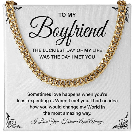 Boyfriend Gift – Cuban Chain with Lucky in Love Message