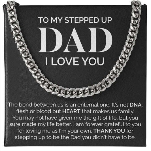 Stepped Up Dad Cuban Link Chain Gift – Bonus Dad Necklace
