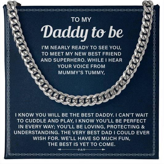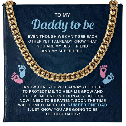 To My Daddy, I Can't Wait To Meet You Daddy, Lovely Necklace & Message Card From Children, Cuban Link Chain For Man