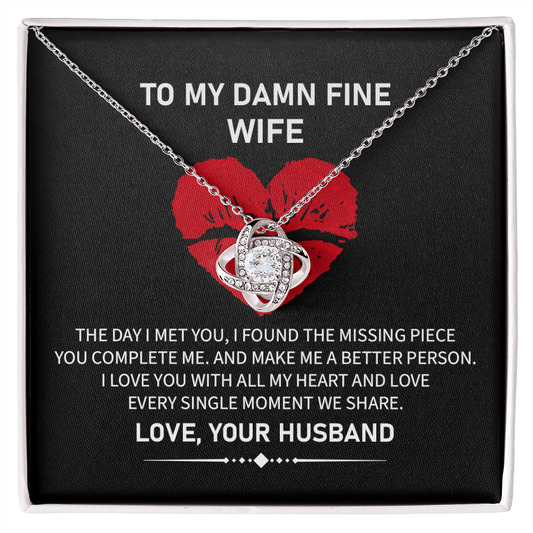 Funny Wife Necklace Gift from Husband with Love Knot Pendant and Bold Message Card