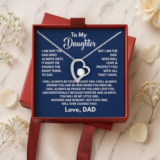 Gift for Daughter from Dad - Forever My Little Girl Necklace with Heartfelt note