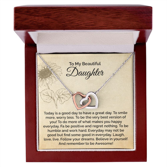 Daughter Necklace Gift with Motivational Message Card