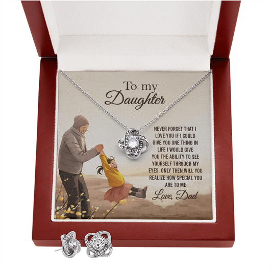 Beautiful Daughter Necklace Gift from Dad – Love Knot Pendant with Sentimental Message Card