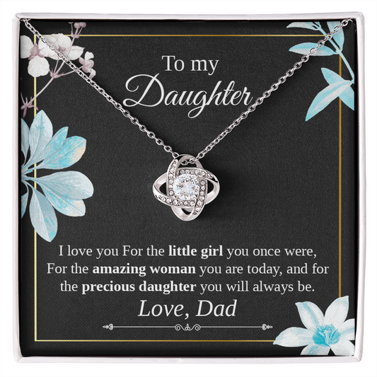 Daughter Necklace Gift from Dad – Love Knot Pendant with Meaningful Message Card