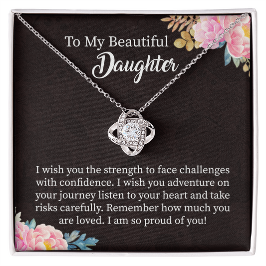 To My Beautiful Daughter Necklace Gift – Love Knot Pendant with Heartfelt Message Card