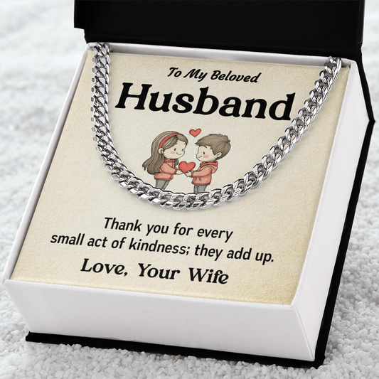 Husband Cuban Chain Necklace Gift from Wife – Stainless Steel Chain with Heartfelt Message Card