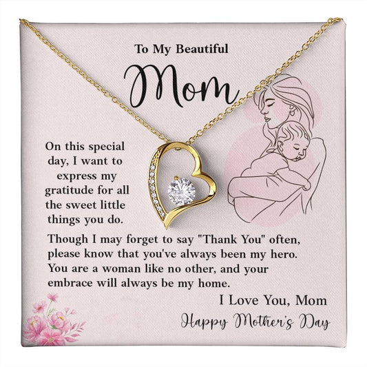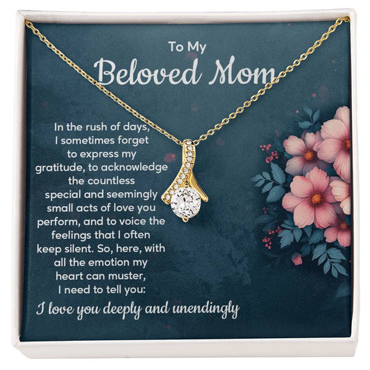 Beloved Mom Necklace Gift from Daughter with Message Card