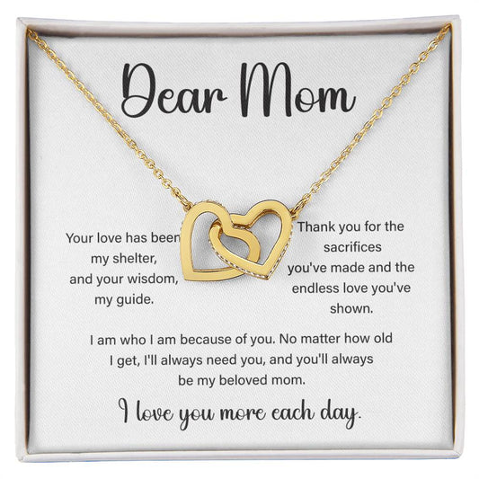 Interlocking Hearts Necklace for Mom with “I Love You More” Note