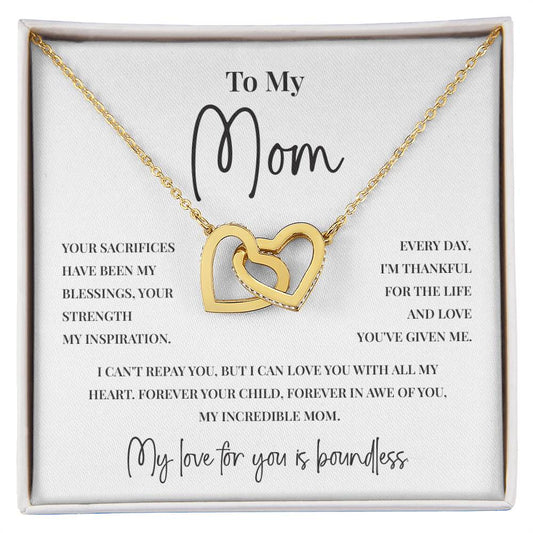 Interlocking Hearts Necklace for Mom with Boundless Love Message Card
