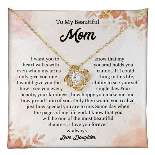 Mom Heart Necklace Gift from Daughter with Gift Box