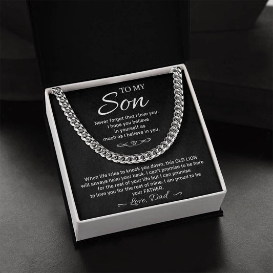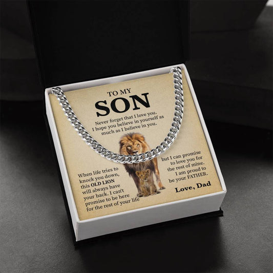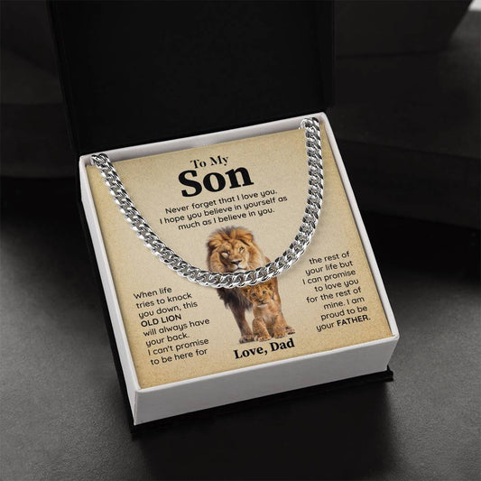 Cuban Chain Necklace Gift for Son from Dad – Old Lion Message Box
