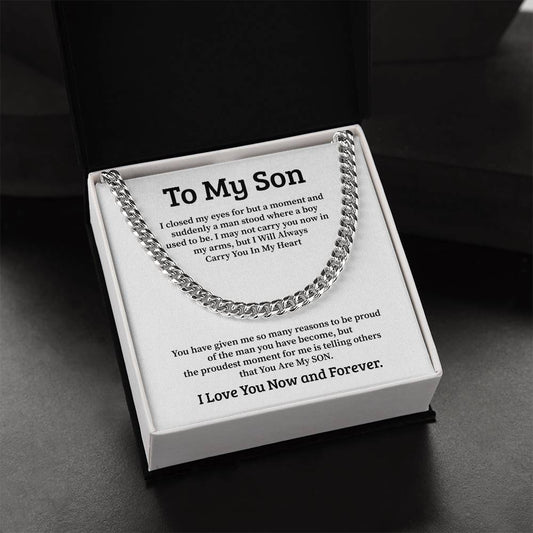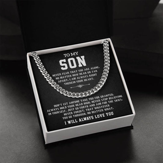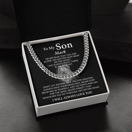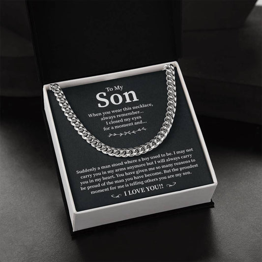 To My Son Cuban Chain Necklace – Emotional Gift with Message Card