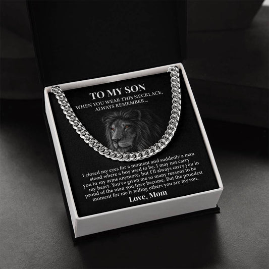 Cuban Chain Gift for Son from Mom – Proud Mother Lion Message Box