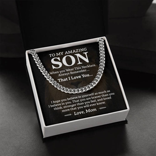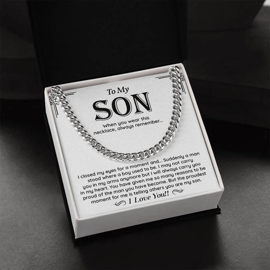 Cuban Link Necklace Gift for Son from Mom – Proud of the Man You Are