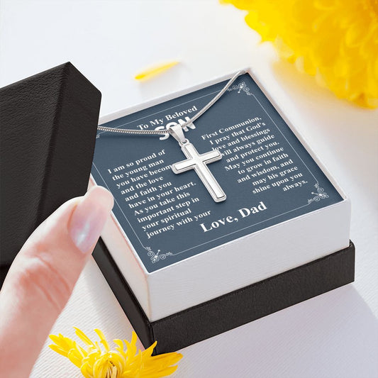 To My Amazing Son Cross Necklace With All My Love Dad - Congratulations On Your First Communion