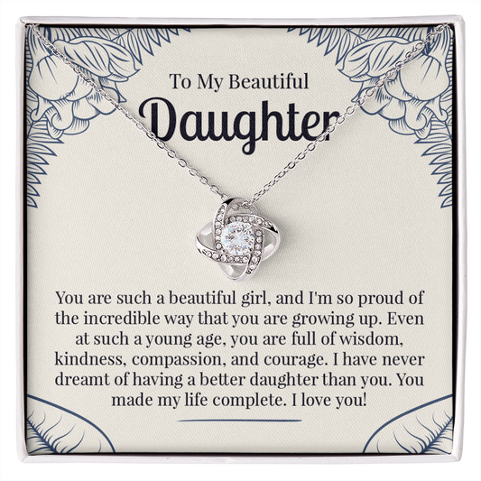 To My Beautiful Daughter Necklace Gift – Love Knot Pendant with Heartfelt Message Card