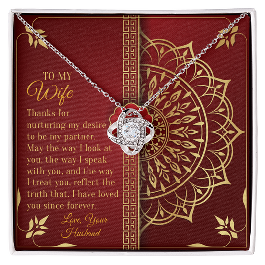 To My Beautiful Wife Necklace Gift from Husband with Love Knot Pendant and Romantic Message Card