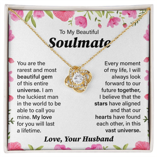 To My Beautiful Soulmate Love From Your Husband, Birthday Valentine's Day Anniversary Gifts Stunning Love Knot Necklace