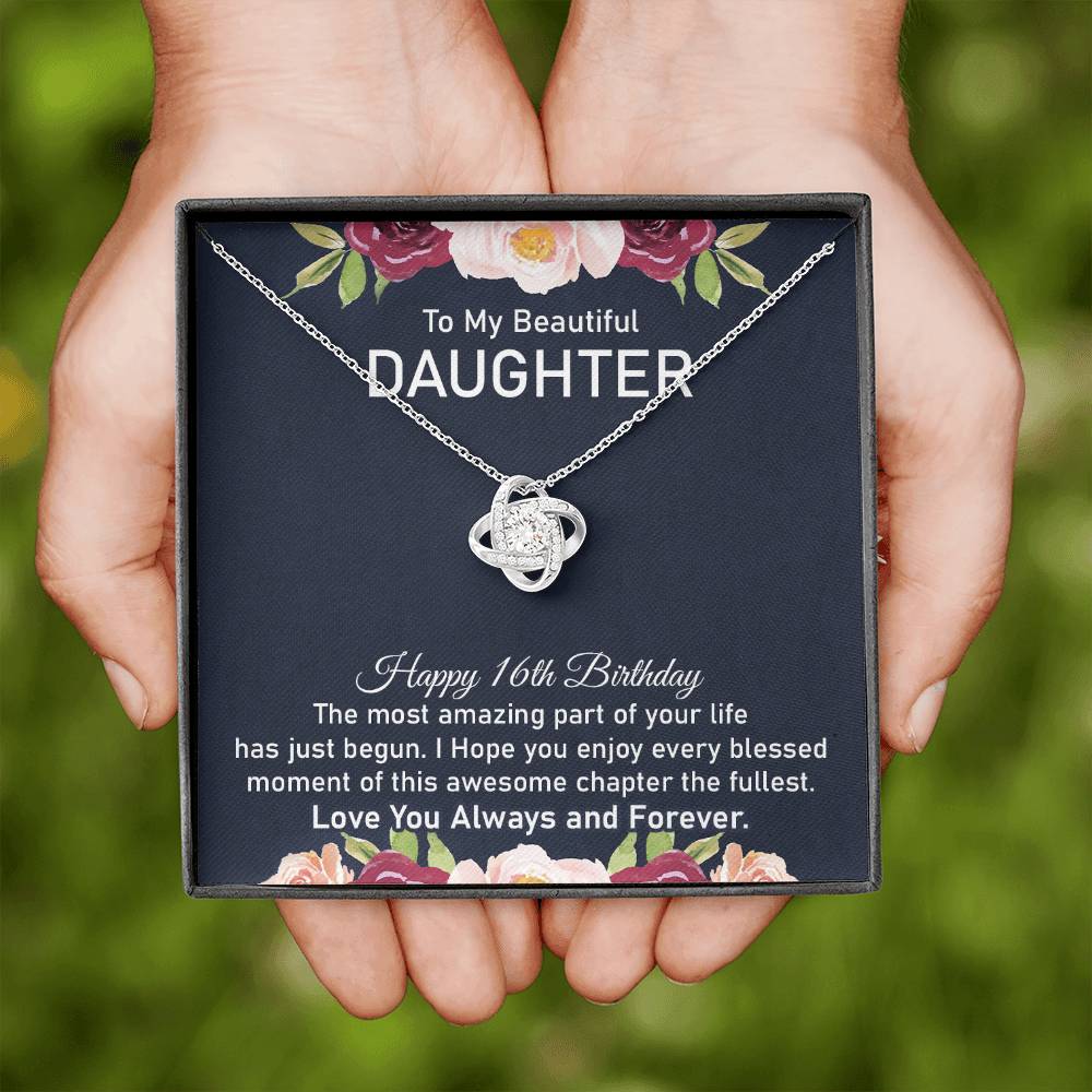 Celebrate her Sweet 16 with an amazing necklace and sweet birthday greeting. This necklace is a loving present for a daughter starting a beautiful new chapter.