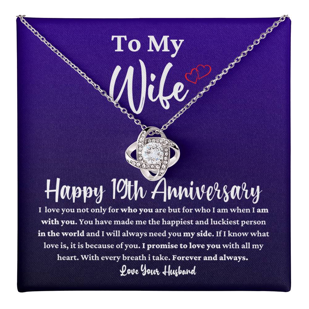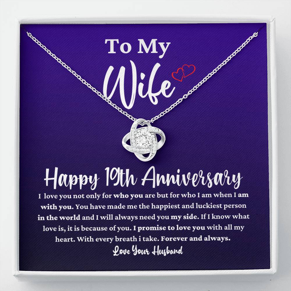 Celebrate your 19th anniversary with this shining Love Knot necklace. A timeless expression of commitment, so it is a genuine celebration of your wife.