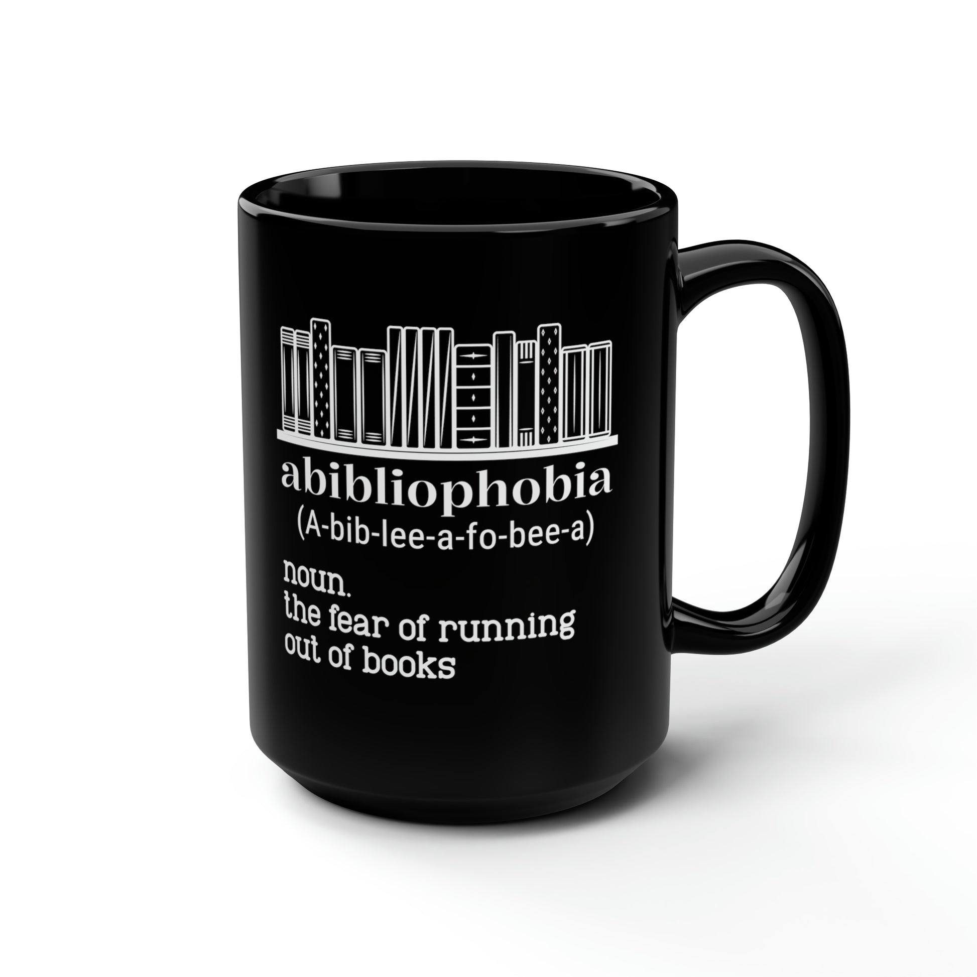 Abibliophobia Noun Ceramic Mug Black Mug, 15oz