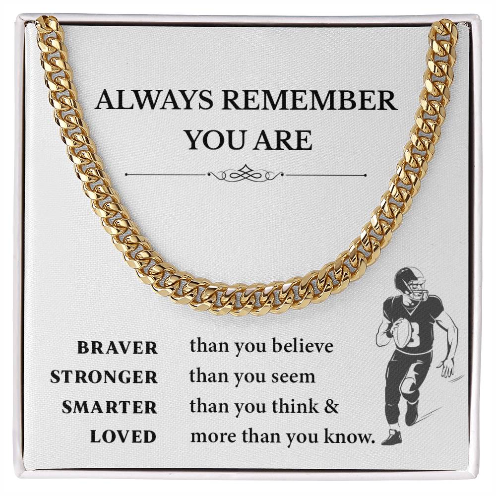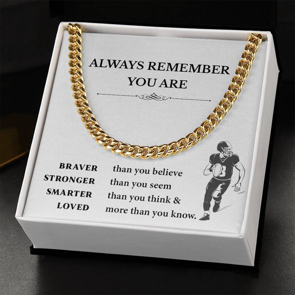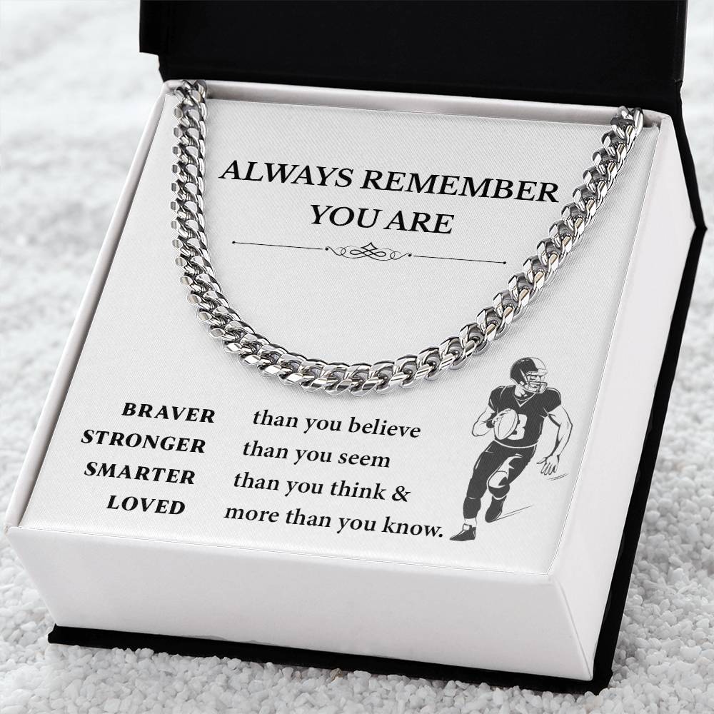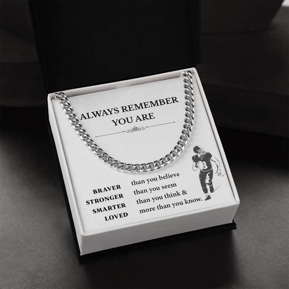 This inspirational football necklace will give boys fuel both on and off the field. This gift includes a bold Cuban link chain and an uplifting message card and is ideal to give to young athletes before the big game or in life.