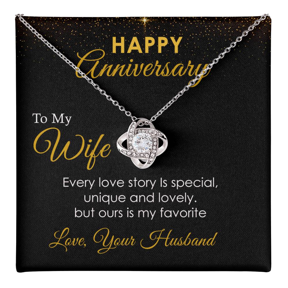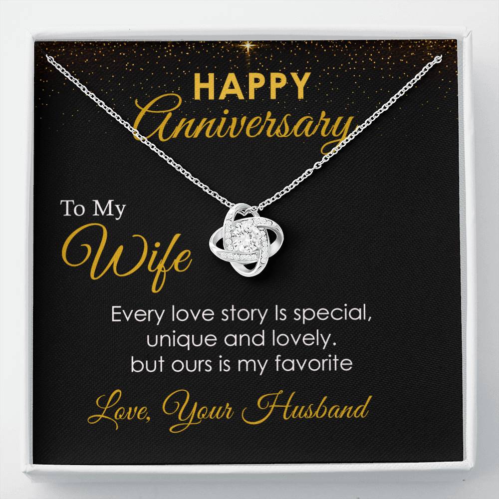Perfect for your anniversary, this elegant necklace reminds your wife just how special your love story is. Gift it to her as a beautiful symbol of your journey together.