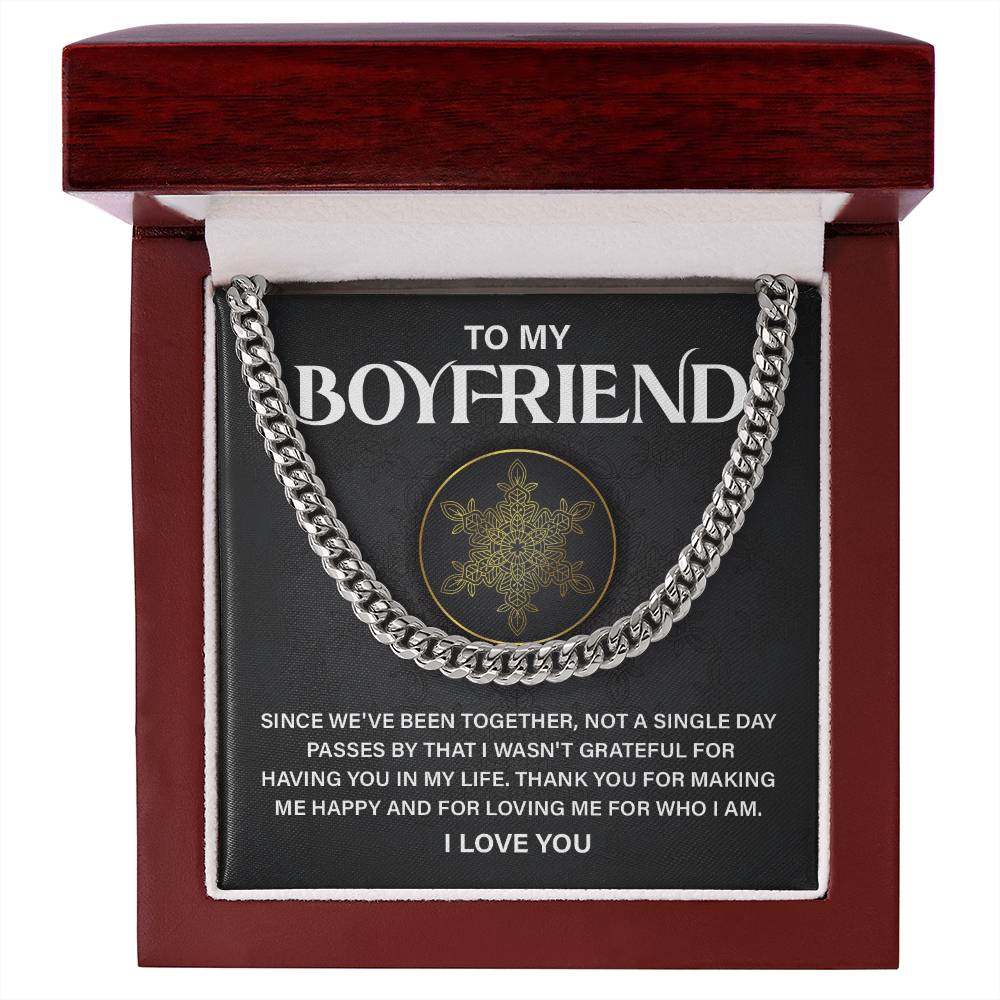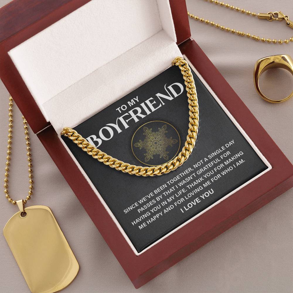 Share your love with this nice present to your boyfriend. It is a nice appreciation gift to him, this Cuban link chain necklace is a worthy gift to him on anniversaries or birthdays or you can just say, thanks for being you. It comes with a touching message card and a gift box, so it is the best romantic jewelry present to give to a man who needs to be noticed.