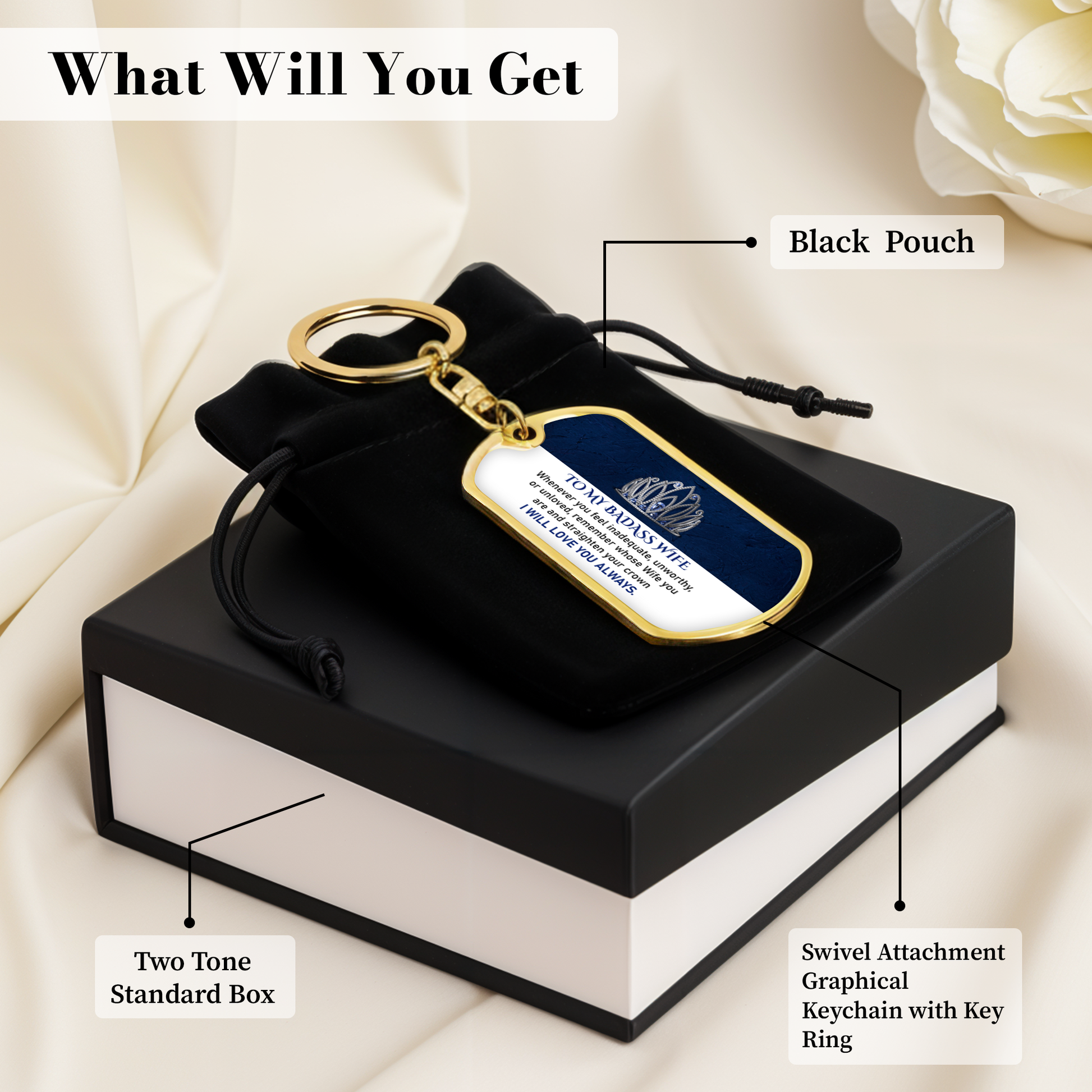 Badass Wife Keychain Necklace - Anniversary, Birthday From Husband
