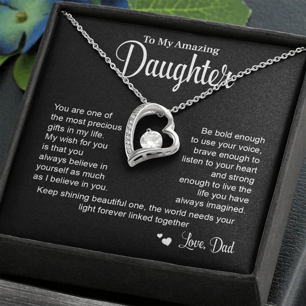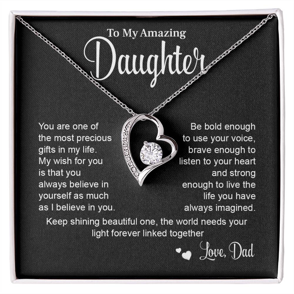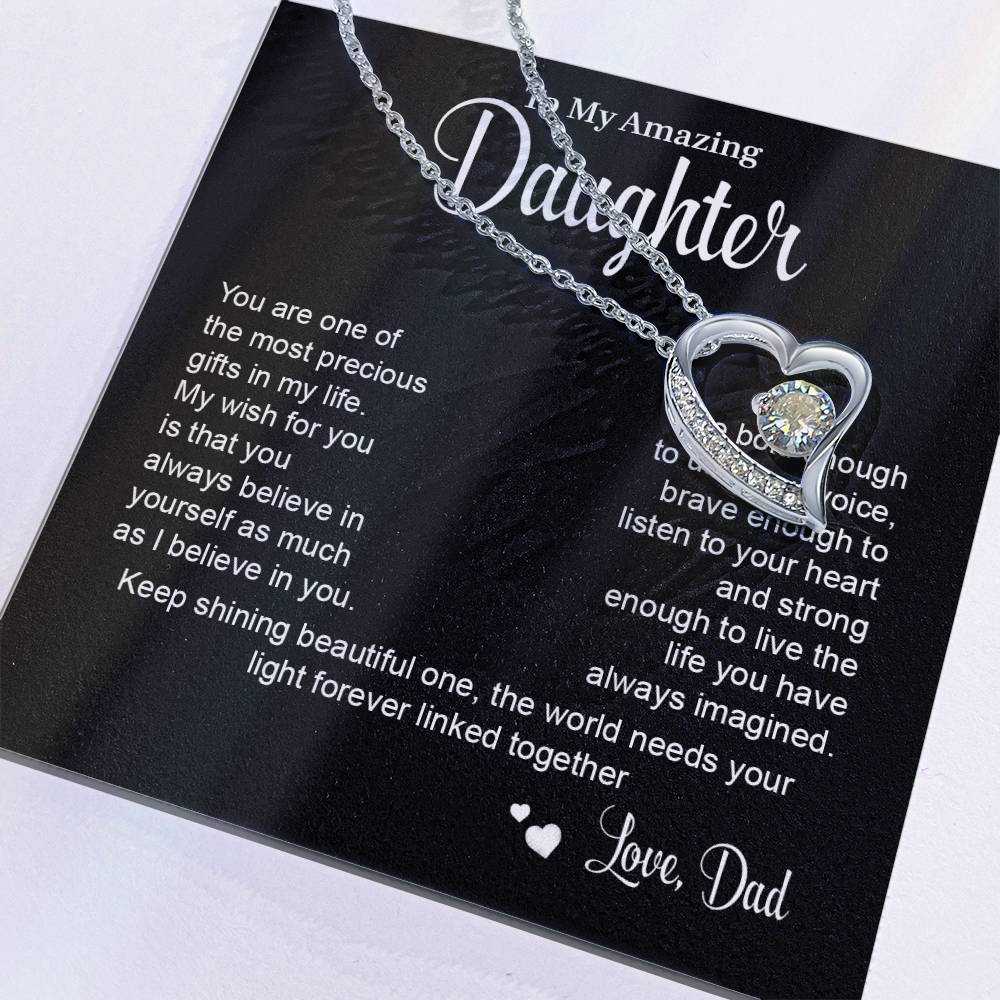 Show your daughter how much she means to you by gifting her this beautiful necklace from Dad. Give her something special on any occasion or simply because she deserves it with this beautiful necklace and thoughtful card that inspires her to have confidence in herself every day.