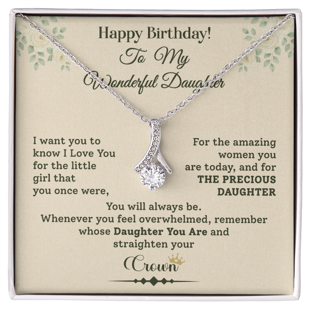 Celebrate your daughter's birthday with a meaningful and elegant necklace that reminds her of her inner strength, beauty, and your endless love. This stunning gift comes with a heartfelt "Straighten Your Crown" message card she’ll cherish forever.