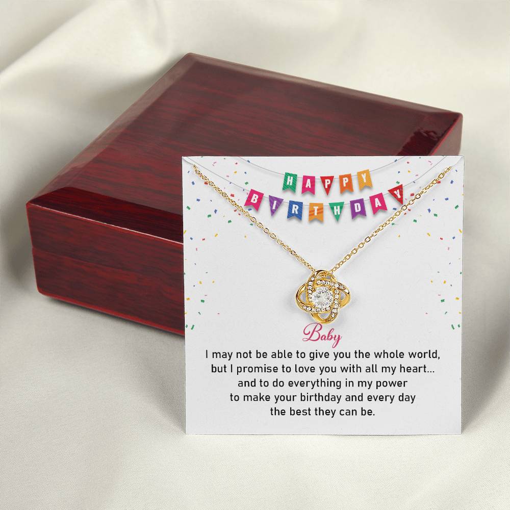 Make your girlfriend forget about romantic birthday presents. This beautiful love knot necklace will make the best birthday present girlfriend boyfriend, as it has a shining pendant and a touching birthday wish. Be it sentimental gifts you are seeking to give her, birthday jewelry to women or just cute presents to your girlfriend, this necklace offers love and style combined in a single beautiful box. This is the best necklace to give to your girlfriend who is the world to you on her anniversary, on valentines day or on her special day.