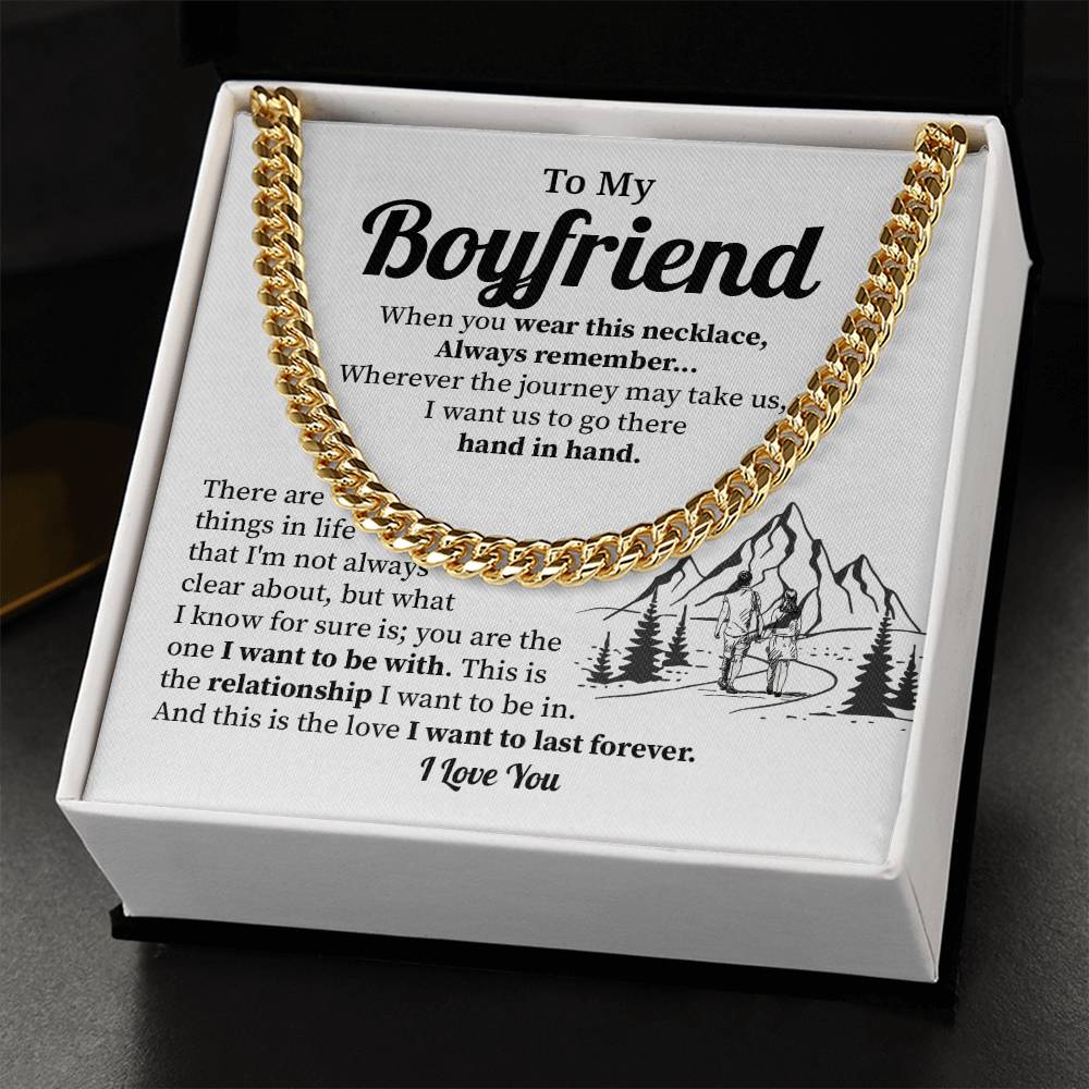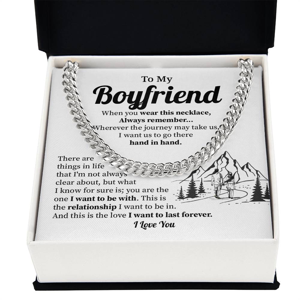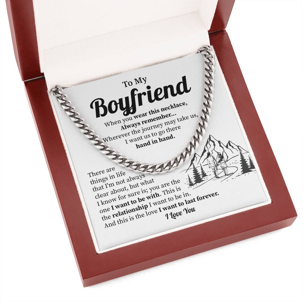This Cuban chain necklace is a romantic and touching present to your boyfriend: to celebrate the anniversary, Valentine Day or just to express your love. It can be a long distance relationship or a daily reminder of your relationship but this boyfriend gift with message card has an eternal style and sentimental value.
