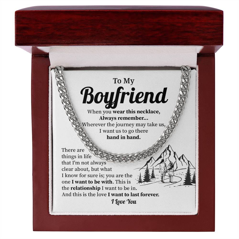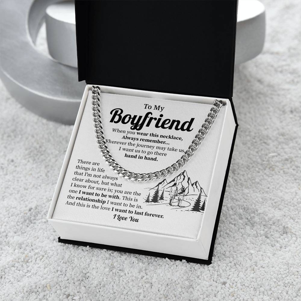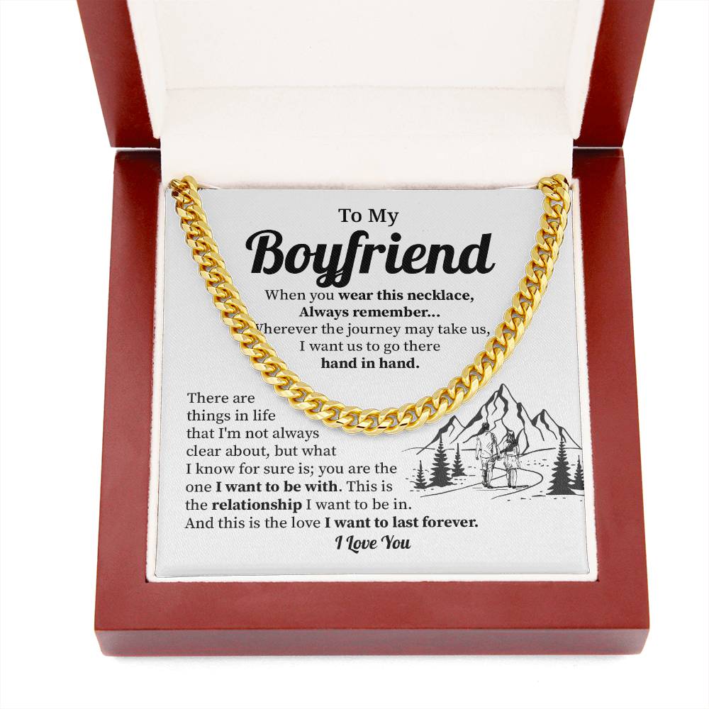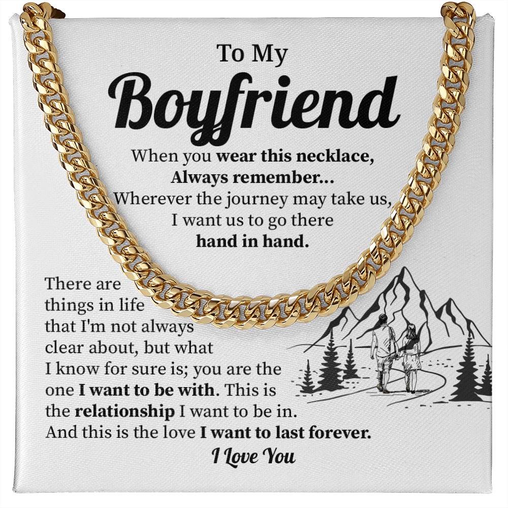 This Cuban chain necklace is a romantic and touching present to your boyfriend: to celebrate the anniversary, Valentine Day or just to express your love. It can be a long distance relationship or a daily reminder of your relationship but this boyfriend gift with message card has an eternal style and sentimental value.